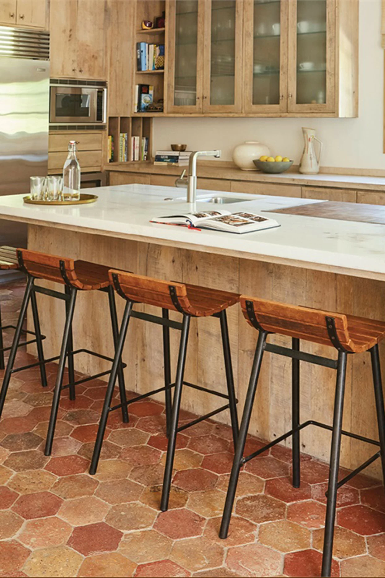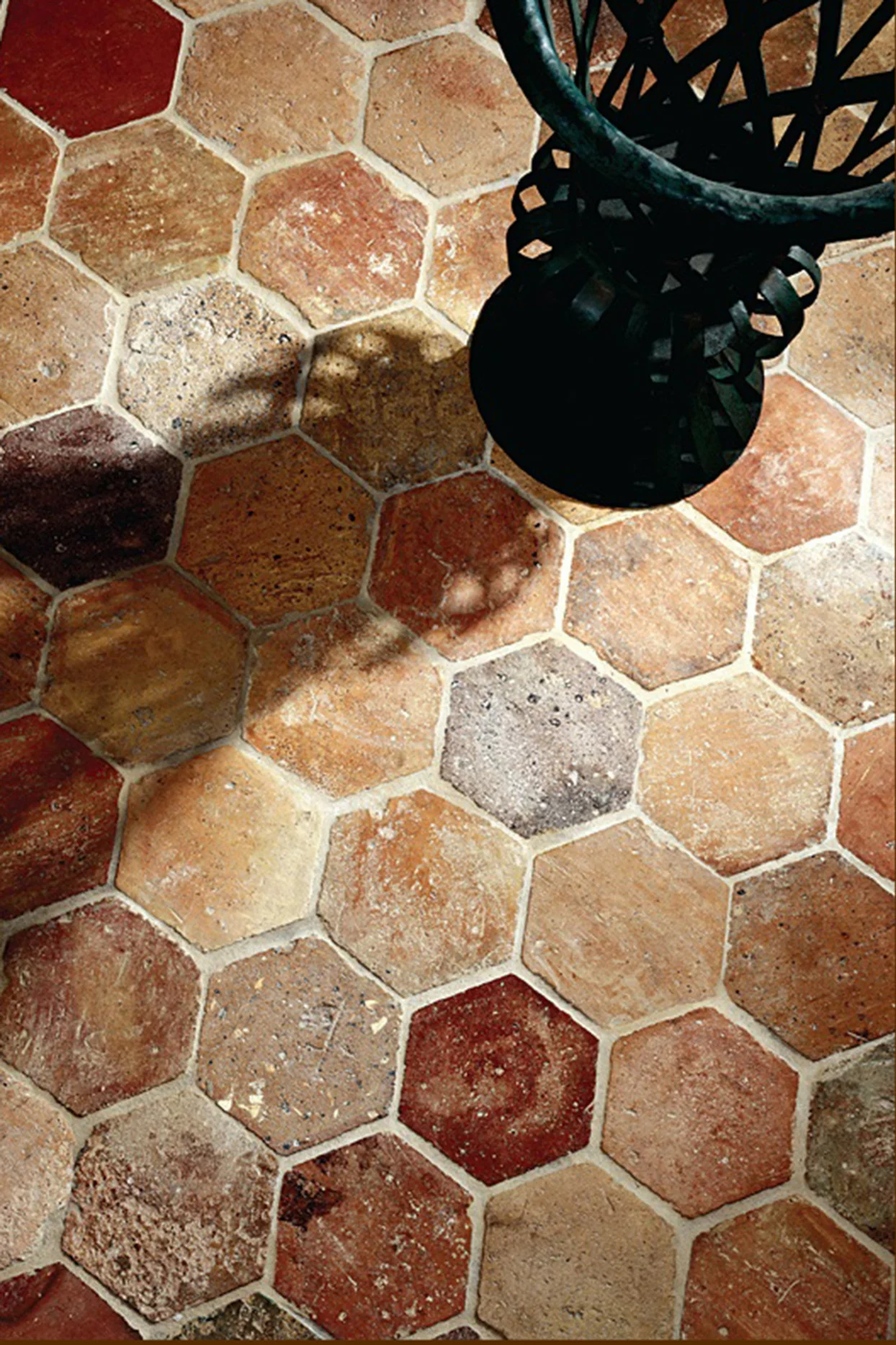 Very nice hexagonal tiles in a red/brown color scheme. The shape of the floor tile makes this floor look slightly different.