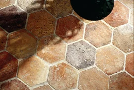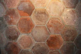 Very nice hexagonal tiles in a red/brown color scheme. The shape of the floor tile makes this floor look slightly different.