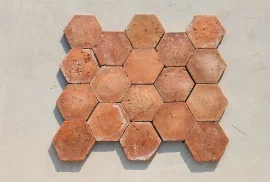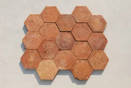 Very nice hexagonal tiles in a salmon/orange color scheme. The shape of the floor tile makes this floor look different.