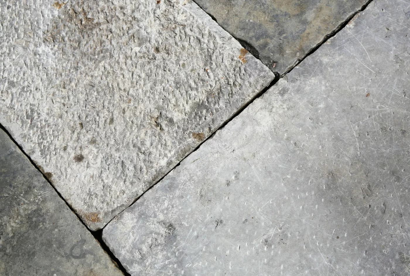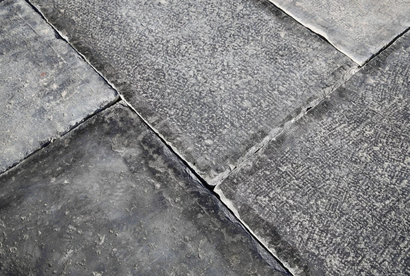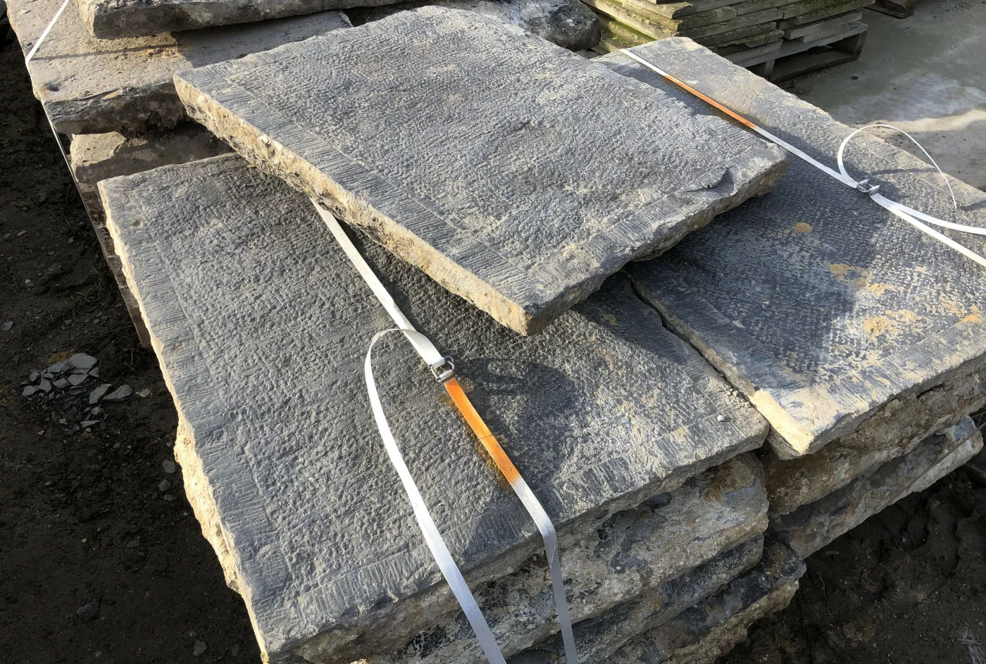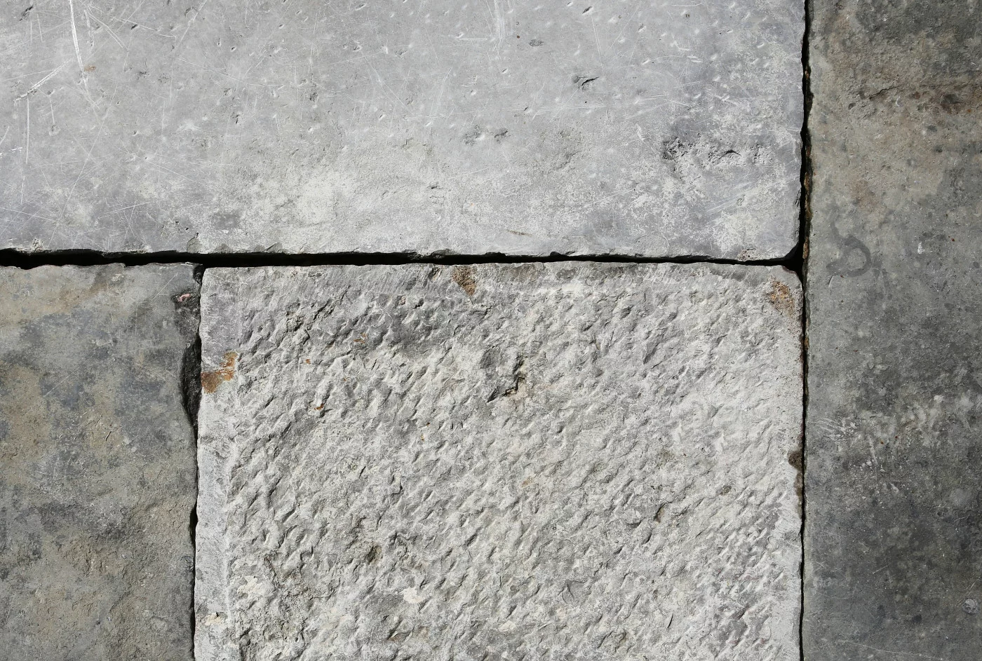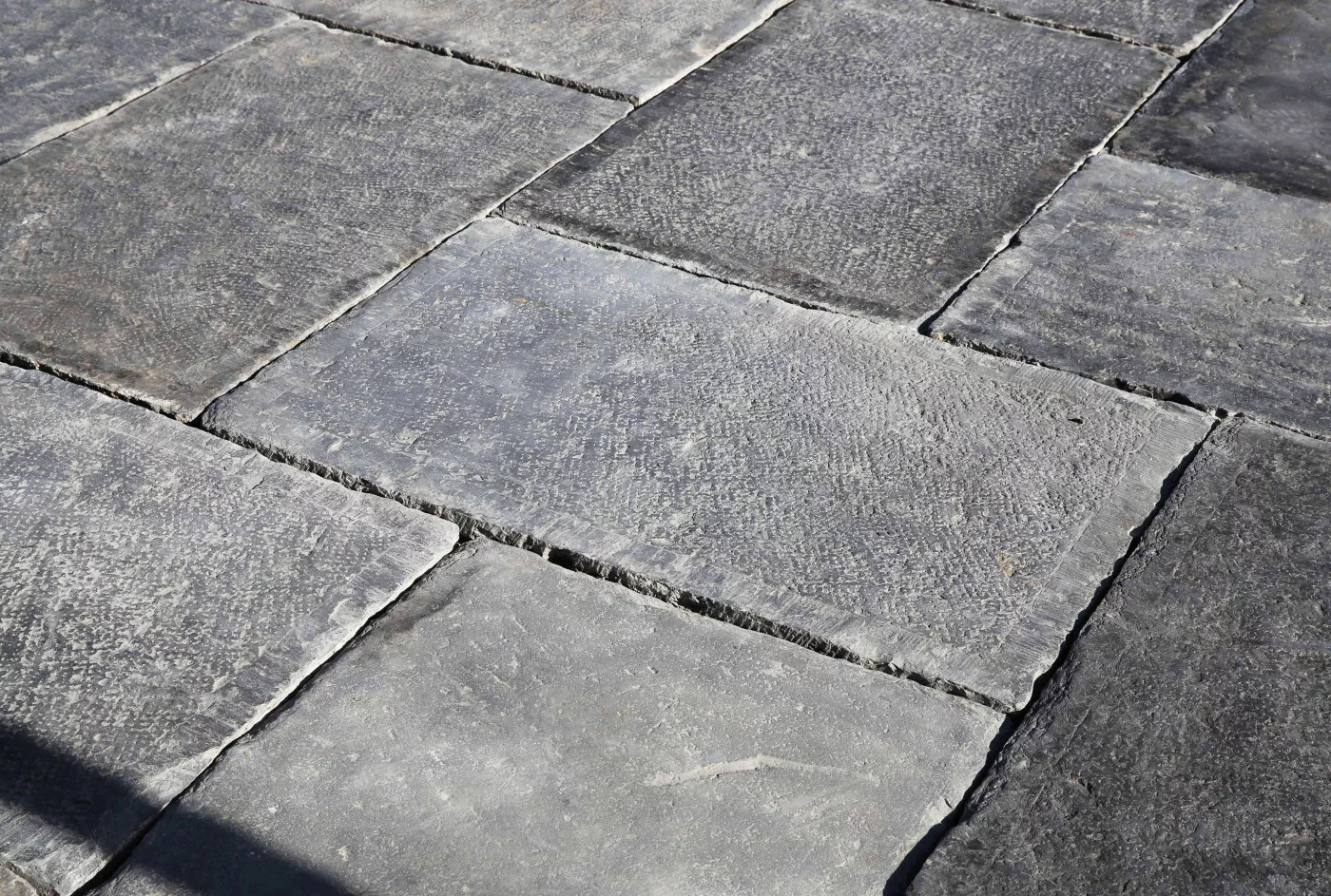 Recently a beautiful parcel of antique Doornik blue stone slabs has been released from recuperation! These are unique slabs due to their imperfections and gray-blue color shading. In Belgium these antique floors are often called old blue stone floors or old bluestone dales. The original thicknesses of these tiles are about 10 cm to 15 cm thick, but we can cut them back to 2-3 cm.